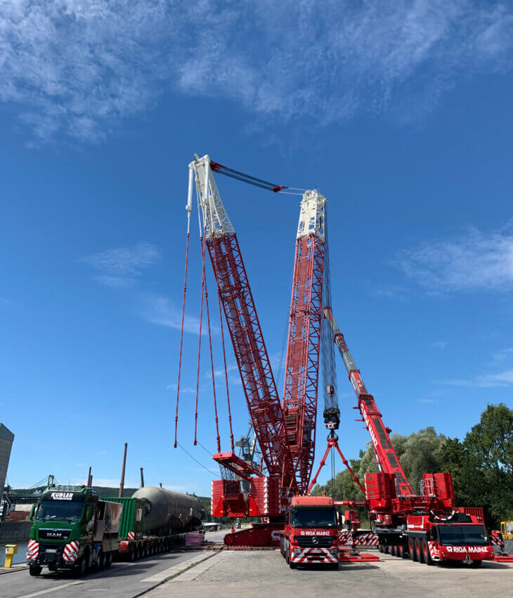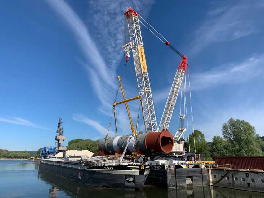In the second project phase in May 2021, the two further reactors were transported to Kelheim, including a 663-metric-ton hydrocracking reactor measuring 32.76 x 6.57 x 6.61 meters and a 597.6-metric-ton hydrotreating reactor with dimensions of 29.73 x 6.38 x 6.33 meters. The hydrocracking reactor was loaded in Ortona, Italy and the hydrotreating reactor was loaded in Porto Marghera, Italy. The complete shipment took a sea voyage route from Porto Maghera to Rotterdam in the Netherlands.