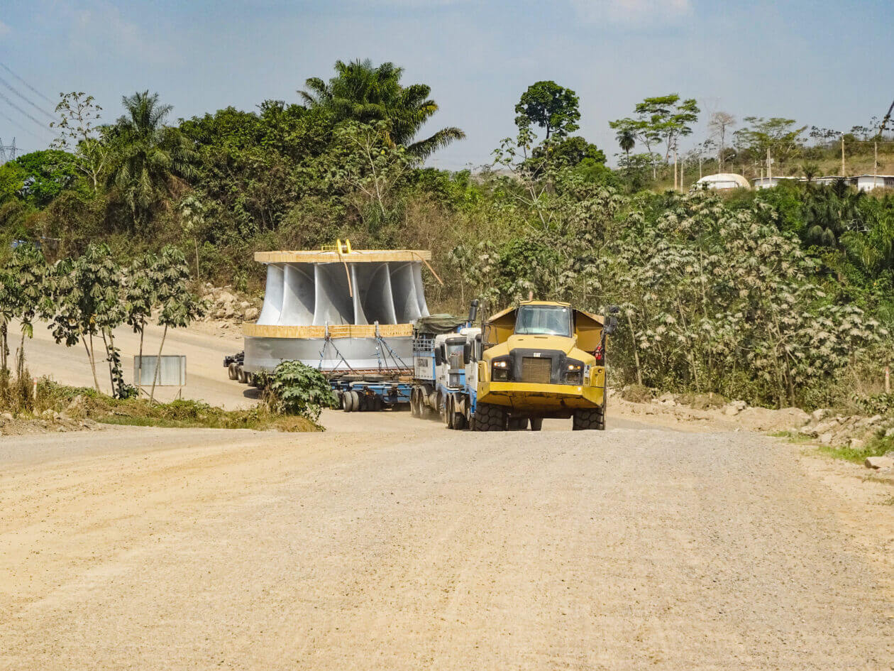 Delivering hydropower plant equipment is a complex task, often due to the remote and challenging locations of project sites, typically situated in mountainous or forested regions far from established transportation networks. These areas necessitate the use of specialized transport methods such as self-propelled modular transporters (SPMTs), barges and occasionally even helicopters, especially when roads are inadequate or nonexistent. The size and weight of components like turbines and transformers further add to the complexity, requiring the construction of temporary infrastructure, such as reinforced bridges or widened roads, to handle the oversized loads.