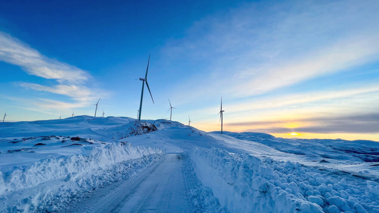 Sunrise at the Øyfjellet Wind Farm