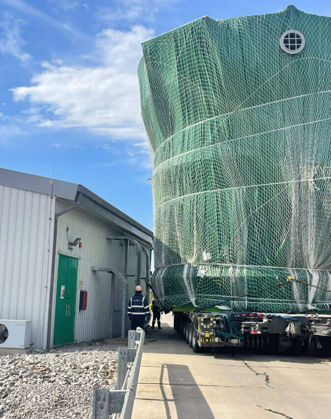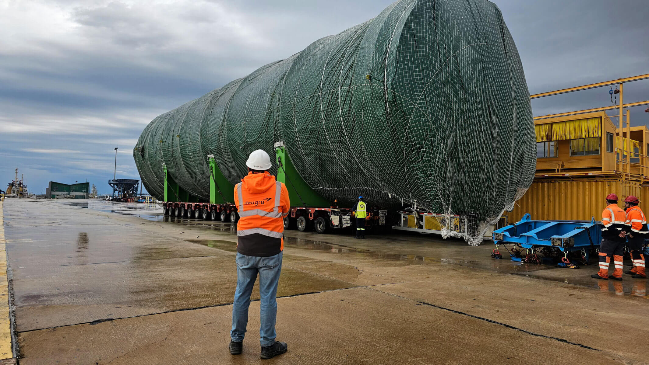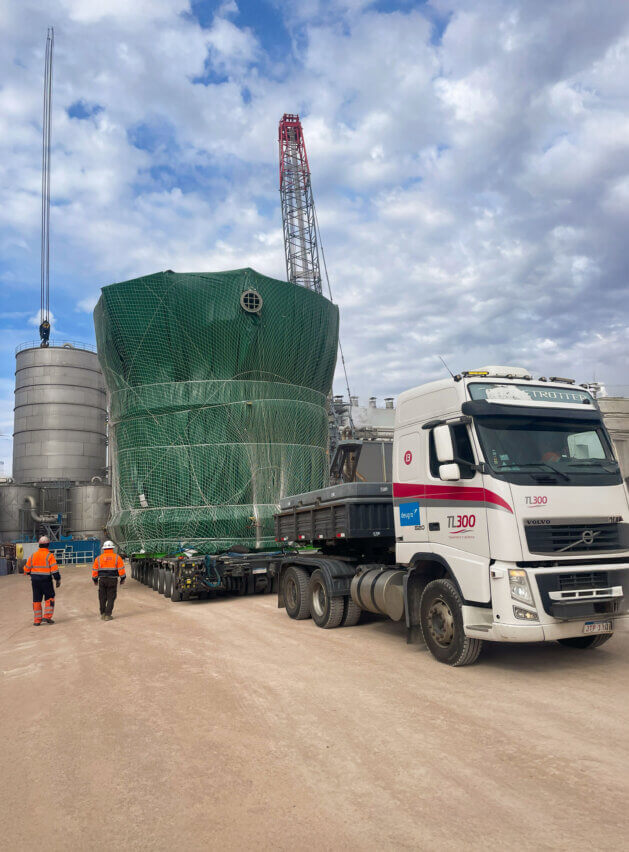 Another challenge was the width and length of the oversized unit, measuring 34.66 x 9.35 x 9.13 meters. For transportation in accordance with the required safety and industry standards, side-by-side axle lines were required. However, such equipment is scarcely available within Uruguay, and mobilizing axle lines from abroad would have significantly increased costs. To address this, the truck was substituted with a Self-Propelled Modular Transporter (SPMT), allowing the out-of-gauge cargo components to be loaded onto shorter equipment. To guide the cargo units from the vessel to the construction site—along all critical intersections and bottlenecks—deugro’s project managers were on-site to personally coordinate and supervise all operations.