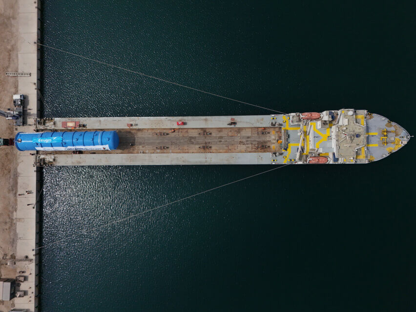 Commissioned by their client Orascom Metito JV, deugro Abu Dhabi was tasked with collecting the oversized cargo units from the supplier’s facility in Ras Al Khaimah. The tasks included arranging for the road transport to the RMC jetty for load-out onto a self-propelled deck vessel, ensuring the safe subsequent marine transport to the MBK ICAD jetty, and safeguarding the on-carriage to the project site in Mirfa, Abu Dhabi, with delivery to the designated laydown area.