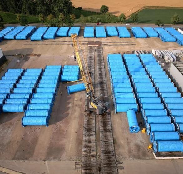 Intermediate storage area for 800+ cable drums with a unit weight of up to 86 tons